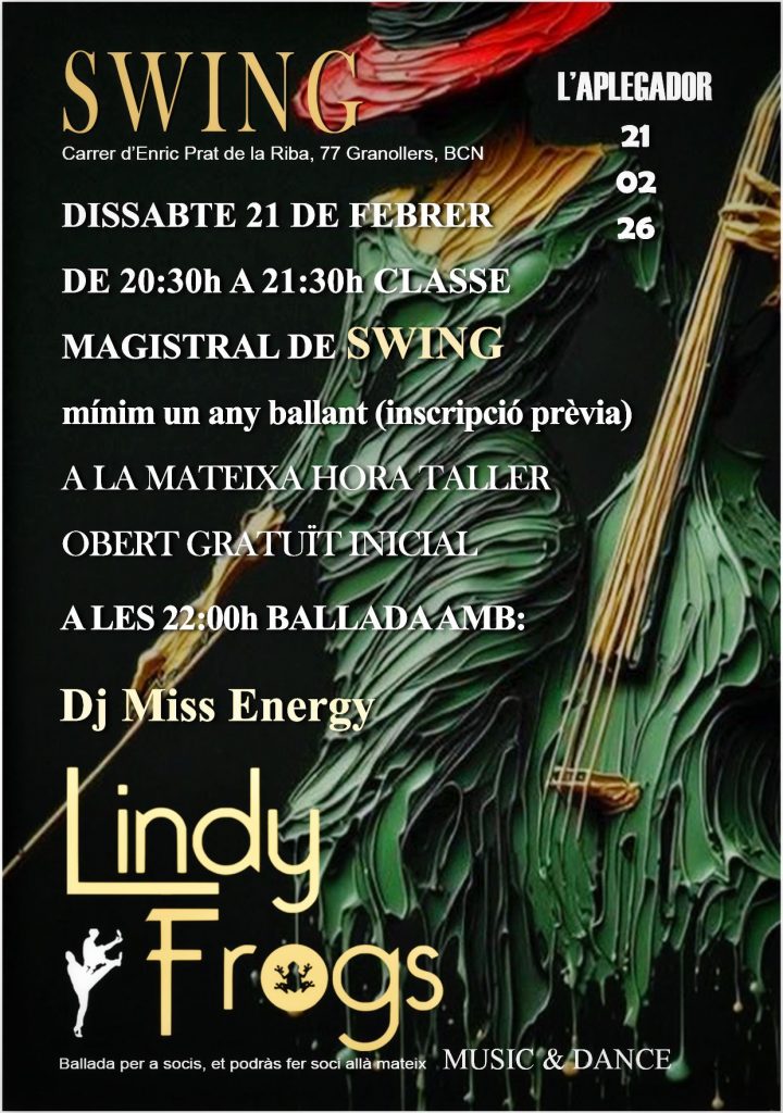 A Lindy Frogs ens dediquem a crear moments inoblidables plens de swing, ball i bon rotllo. Organitzem ballades, concerts, cinefòrums, exhibicions i activitats per aprendre i gaudir junts. Ens trobem regularment per ballar, compartir i fer créixer la comunitat swinguera. Si t’agrada moure’t, passar-ho bé i conèixer gent amb la mateixa energia… uneix-te a la granota i salta amb nosaltres!